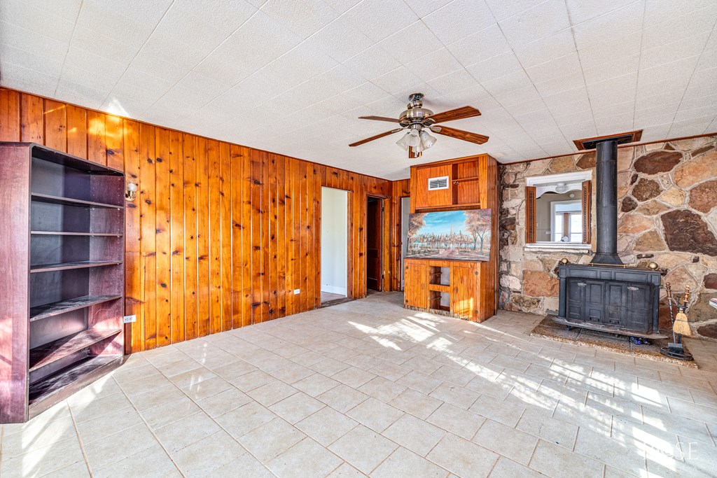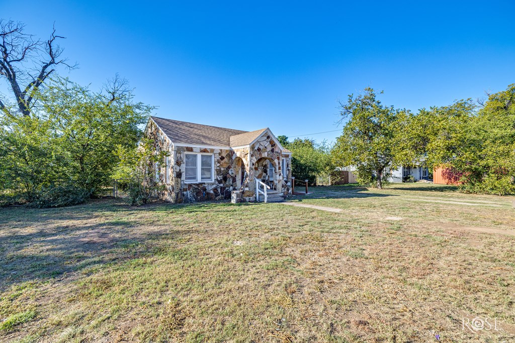 Unique home on a large lot just under half an acre! Distinctive rock work and low-maintenance exterior. Offering plenty of space and privacy. The home features two spacious living areas, a wood-burning fireplace, and an extra room ideal for an office or hobby space. Outside, you'll find two storage buildings and a private water well. Get in today!