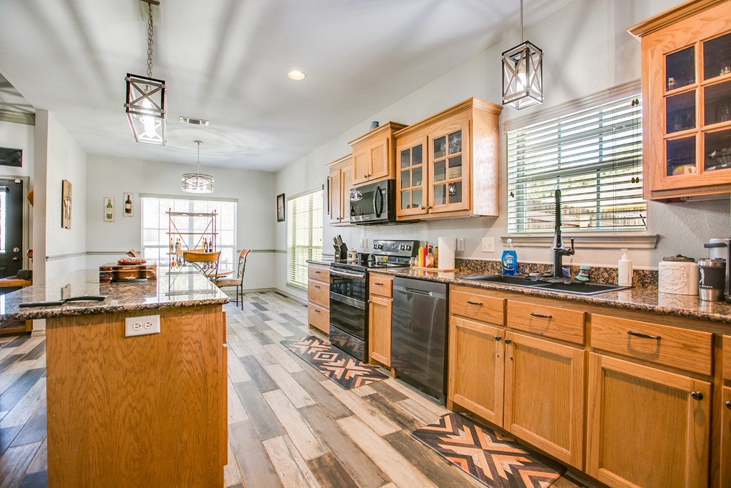 Welcome home to this 4 bedroom 2 bath beauty just a short distance from Lamar Elementary.  This home boasts an open layout with a gorgeous kitchen featuring a large granite island and black stainless steel appliances.  The primary suite offers a spa-like bathroom with double sinks, a walk-in shower, and a relaxing corner tub. Enjoy the energy efficiency provided by the the solar screens on the front windows while relaxing in the generously sized living room.  Outdoors you will love the privacy-fenced back yard, dedicated dog run, and storage building.  The 2 car garage is alley accessible and the driveway includes plenty of extra parking.  Call today for your private showing.