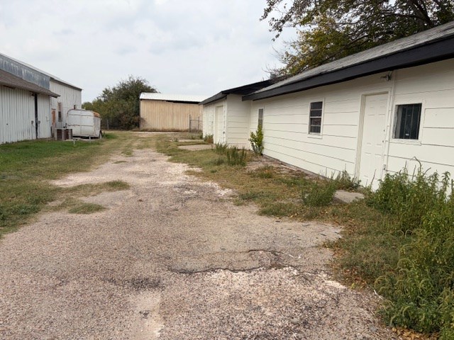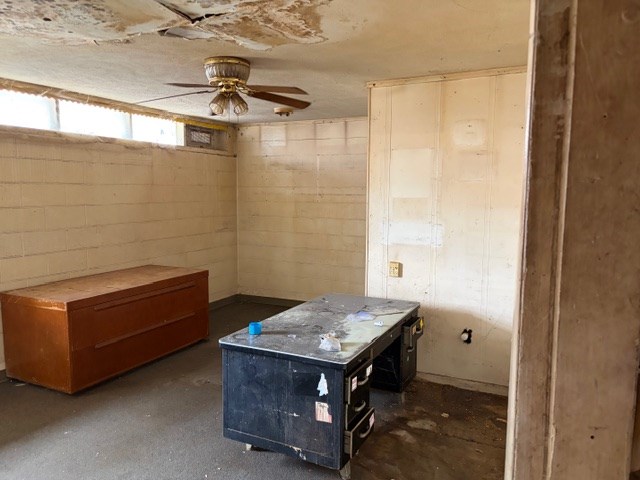 Great little office/warehouse directly across from City Lumber. The property goes to the little pipe rail to the left. Giving you a drive thru area. It does have a new roll up door. It is going to be hard to find something this big for this price.