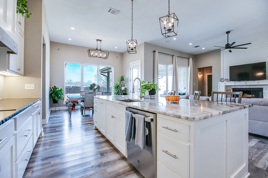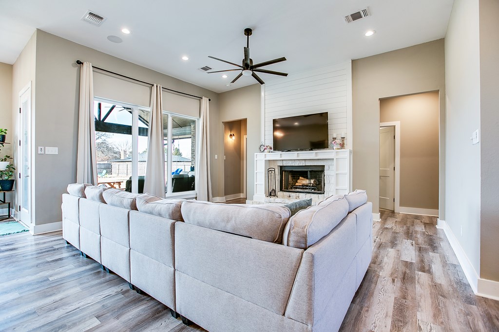This stunning 5-bedroom, 4-bath home on a spacious half-acre in Wall ISD was built in 2022 and impresses from the moment you walk in. The open-concept floor plan offers split bedrooms for privacy, and the versatile 5th bedroom can easily serve as a second living area or game room. The kitchen is a true showstopper, featuring an abundance of cabinetry and a beautiful oversized island—perfect for entertaining. Cozy up by the wood-burning fireplace, then step outside to enjoy the large backyard with plenty of room to relax or play.